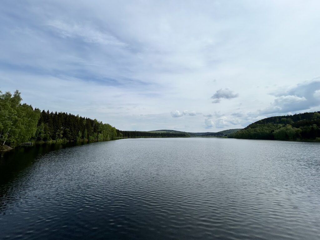 Přehrada byla postavena v horním údolí říčky Flohy 1960 a 1968. Slouží jako zásobárna pitné vody pro střední Krušnohoří. Přehradní hráz je vysoká kolem 40 metrů a skládá se z 24 polí, která jsou široká zhruba mezi 10 a 15 metry. Z větší části patří do Saska, z podstatně menší části do Čech. Z hráze je krásně vidět nejen vodní hladina s okolními kopci, ale i krajina pod ní. Hráz je opravdu veliká a je nutno ji přejít, abychom mohli pokračovat do městečka Neuhausen.