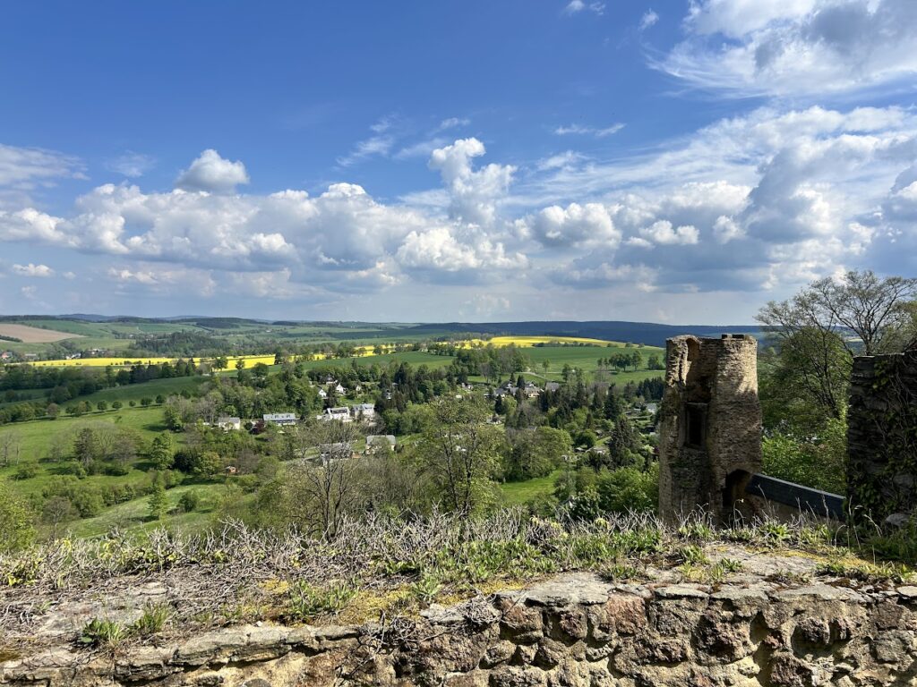 Hrad stojí na žulové skále v nadmořské výšce 680 metrů a ze severovýchodu přiléhá ke stejnojmennému městečku. Byl založen pravděpodobně v první polovině 13. století jako hraniční pevnost mezi Míšeňským markrabstvím a Čechami, aby zajišťoval ochranu obchodních stezek a stříbrných dolů v okolí.