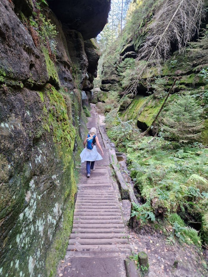 Cesta skalami nejen po schodech z Bad Schandau Ostrau na Gratweg