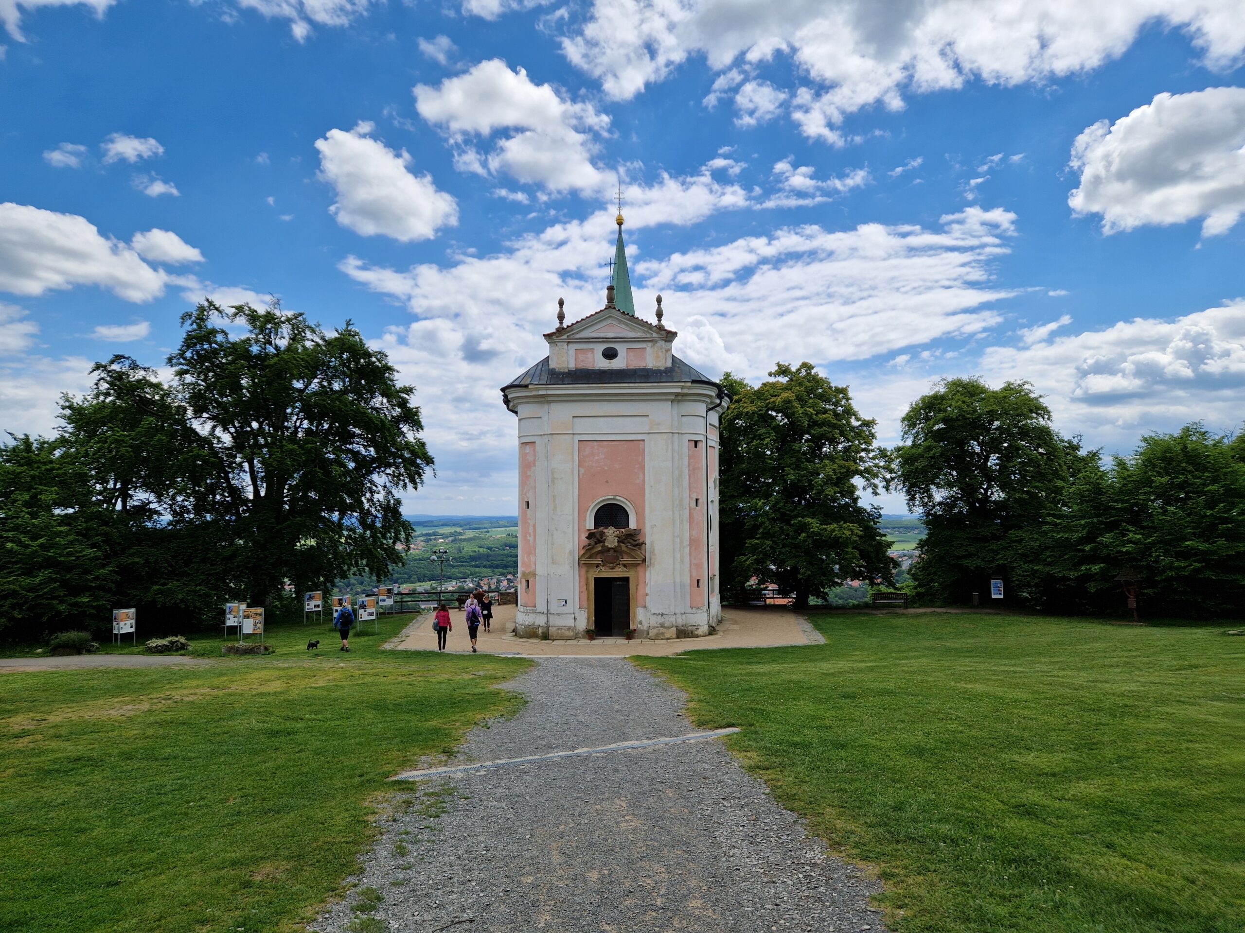 Dojdeme tam asi po 6 kilometrech od rozhledny. Je to krásné místo s geniem loci, křížovou cestou, klášterem a kostelíkem sv. Máří Magdalény. Také je tam vyhlášený stánek s občerstvením, který je unikátní v tom, že si tam můžete koupit buřta a na ohni si ho sami upéct. Pro lidi z města opravdu atraktivní místo.