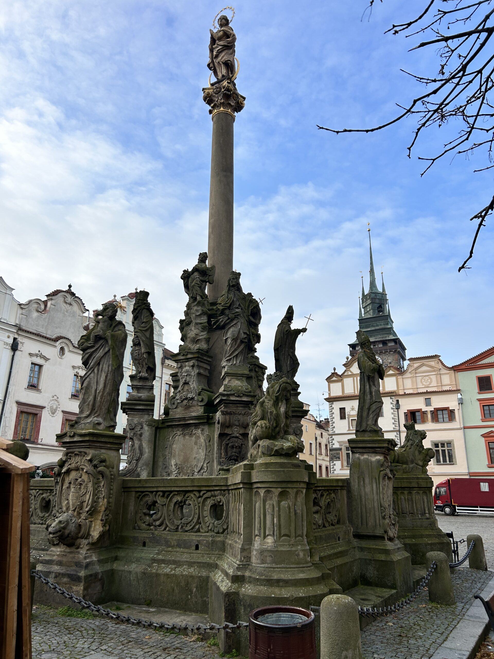 Jedním z hlavních symbolů města je Zelená brána – vysoká gotická věž, která nabízí nádherný výhled na celé město a jeho okolí. V době mé návštěvy byla brána pod lešením, takže si možnost vystoupat nahoru nechám na příště. Blízko brány najdete monumentální kostel sv. Bartoloměje, ale i jeho dveře zůstaly tentokrát zavřené.