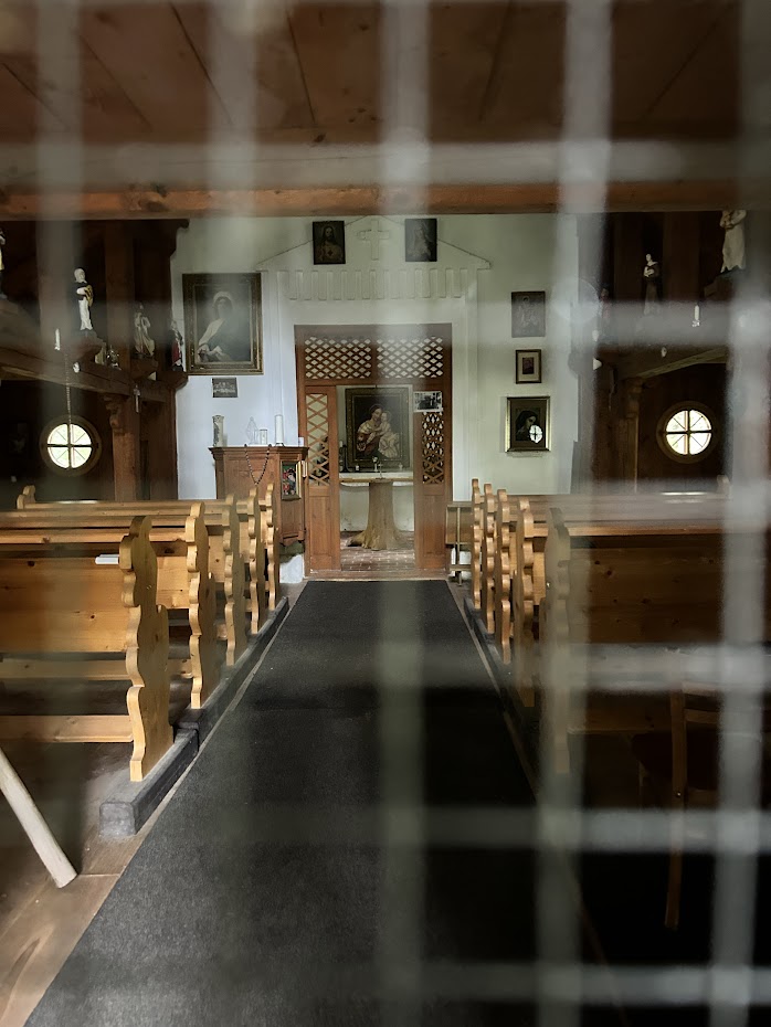Kaple je hezky obnovena včetně interiéru. V době naší návštěvy byla zavřená. Nahlédnout dovnitř jsme ale mohli přes mříže. U kaple jsou 2 velké dřevěné stoly s lavicemi. Takže v hezkém počasí lze posedět, občerstvit se a vychutnat si místního génia loci.