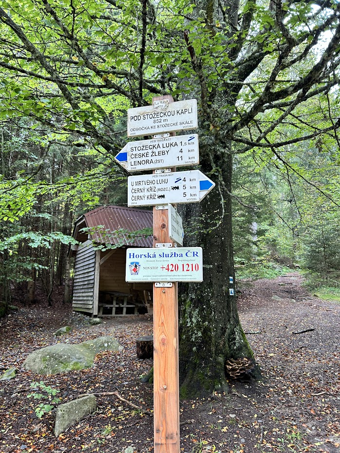 Z placeného parkoviště ve vesničce Stožec jdeme po Zlaté stezce (žlutá značka) asi 2 km až k odbočce Stožecká luka. Tam odbočíme na modrou značku a po dalších necelých 2 km přijdeme k přístřešku pod Stožeckou kaplí. Taky odbočíme do lesa a po asi 500 m dojdeme ke Stožecké kapli. Celková trasa tam a zpět měří 9 km a překonáte výškový rozdíl 170. Tady je mapa.