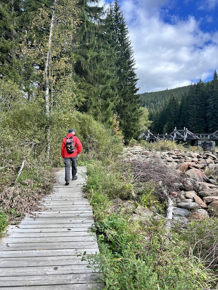 My jsme už z časových důvodů nepokračovali. Můžete se vrátit stejnou cestou (doporučuji) nebo při nedostatku času po silnici, pokud potřebujete ušetřit čas. Pak vám na návrat k parkovišti stačí 30 minut. I když bylo krásné počasí, cesta lesem po naučné stezce je relativně krátká. Ale turisticky docela náročná a pevná obuv je nutností.