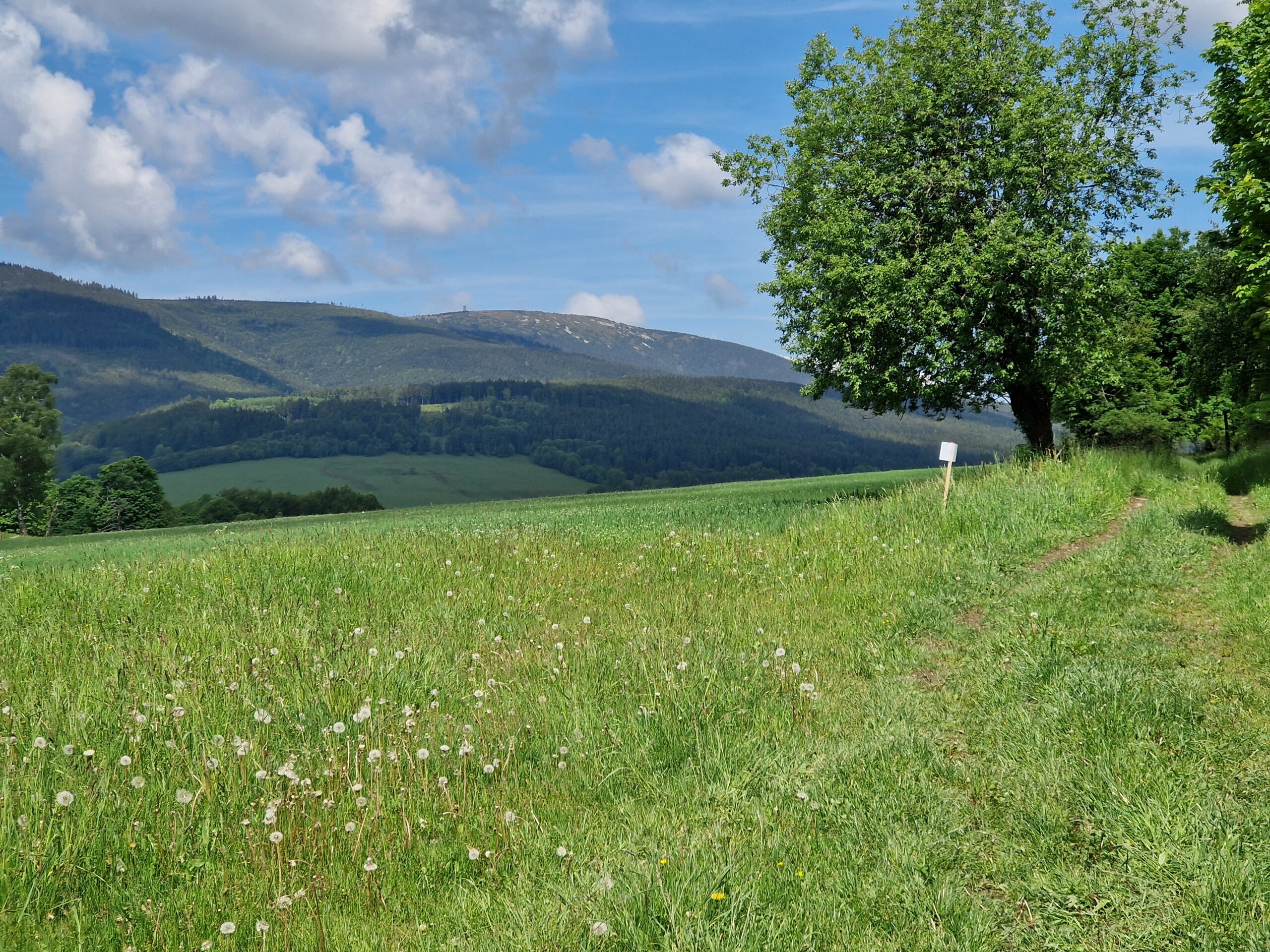 Většina turistů bude asi začínat svou cestu tady, protože se tady nachází velké parkoviště. Pokračujeme po žluté, s případnou zastávkou na chatě Návrší. Já jsem si z nabídky jídel opravdu nic nevybral a pokračoval vzhůru. Tak po docela pohodlné cestě, už skoro bez dalších lidí, dojdete až k rozcestí Nad Adéliným pramenem. Dále pokračujeme po červené až k rozcestí Pod Ludmilou, odkud začínají krásné výhledy po okolních kopcích.