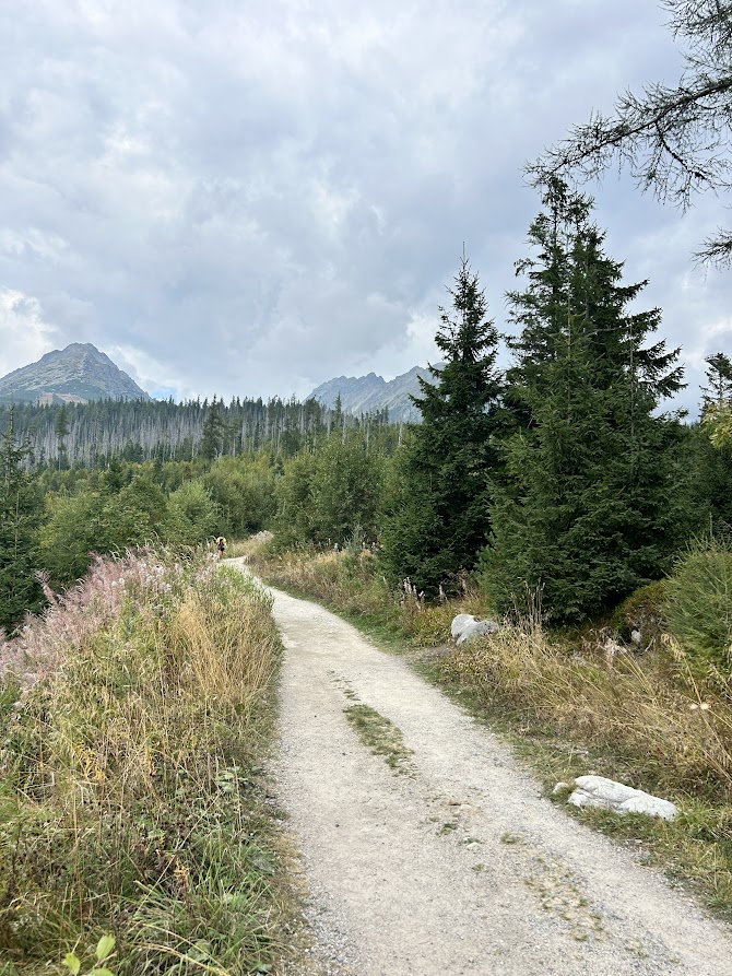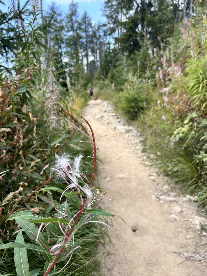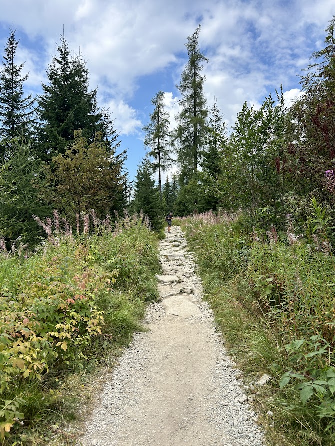 Od rozcestí u Hotelu Solisko cesta příjemně ubíhá bez velkého převýšení s tím, že vlevo jsou krásné výhledy. Do nížiny na městečko Važec a protější Nízké Tatry. Takže jak jsme se kochali, došli jsme skoro až k rozcestí „pod Furkotskou dolinou“. Ani jsme si nevšimli, že už máme kus cesty za sebou a ani nejsme moc unaveni. Převýšení 160 metrů není moc a je rozložené na skoro 5 km, takže se nejedná o žádné prudké stoupání. Od rozcestí se už jde v podstatě po rovině lesem bez výhledů, ale tak nějak to nevadí. Okolní les má už vysokohorský nádech a je pořád co pozorovat. Šli jsme za sebou, pozorovali okolí a opravdu si to užívali. Ani jsme si nevšimli, že se mezitím zatáhlo a za chvíli bude pršet. To už jsme naštěstí byli skoro u Jamského plesa. Skoro nikdo tam nebyl. Je malé, ale příjemné a je tam vysokohorský klid. Na rozdíl od zkomercionalizovaného Štrbského Plesa.