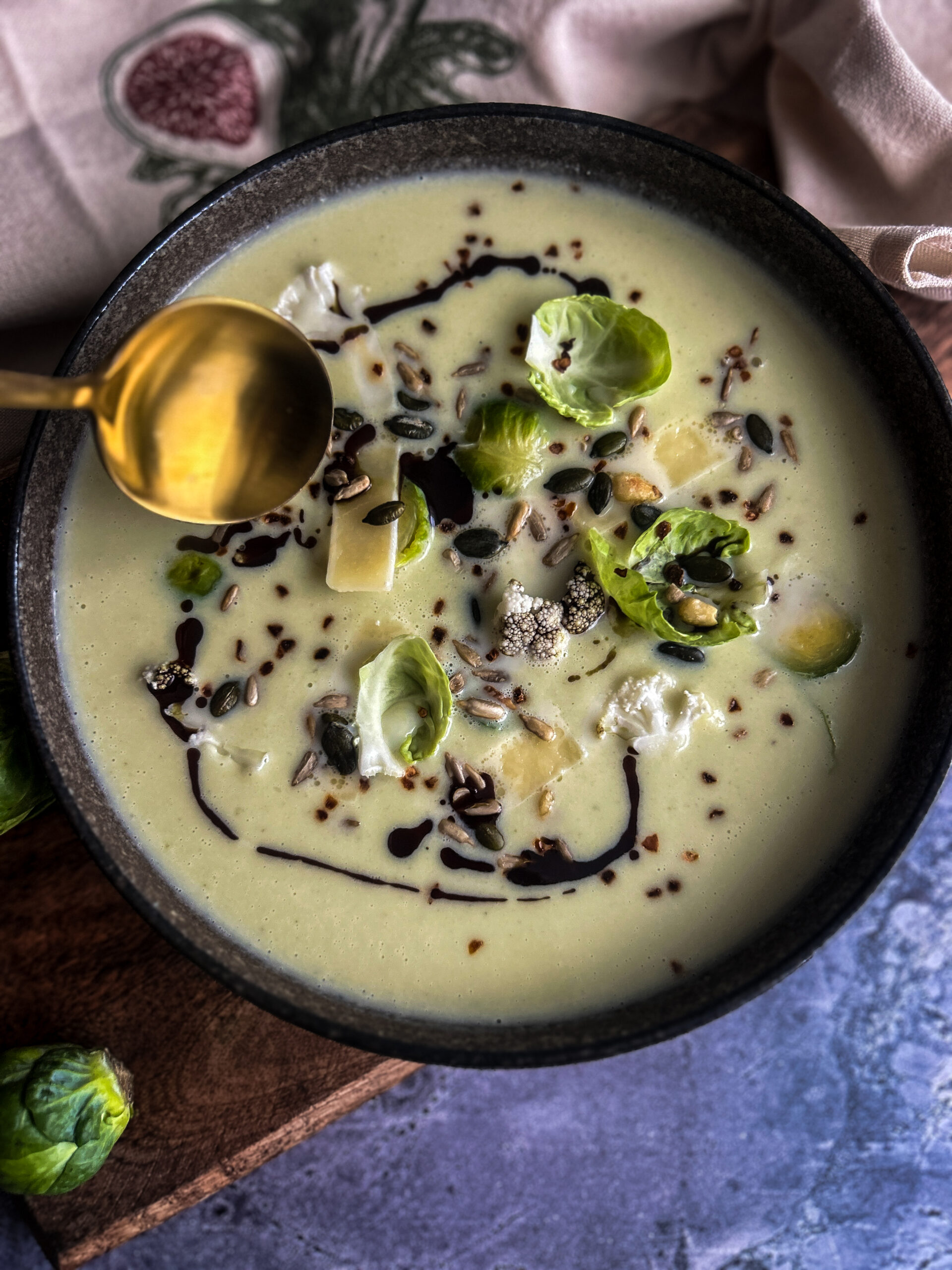 Na přípravu této opravdu dobré polévky jsem využil zbytky – pečenou růžičkovou kapustu z předchozího dne (nechte si tak 3 ks na ozdobu) a košťály z brokolice a květáku, které jsem měl jako přílohu k dalšímu receptu. Byly doby, kdy jsem podobné zbytky vyhazoval, ale to by byla velká škoda. Nejenže nebudete tolik plýtvat, ale dokážete s nimi udělat velkou parádu. A ještě můžu říkat, jak jím udržitelně.