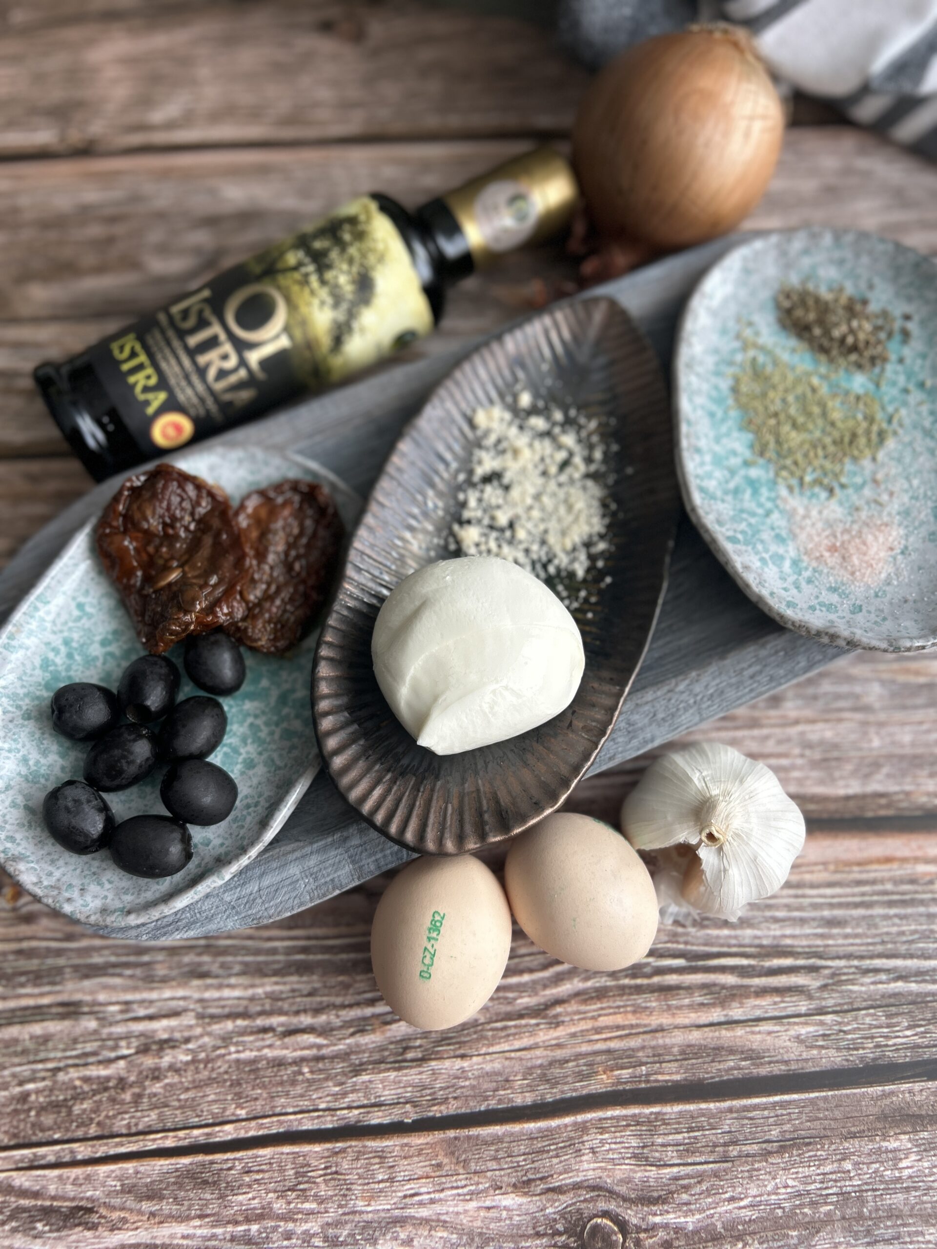 - 30 g sušených rajčat v oleji, drobně nakrájených