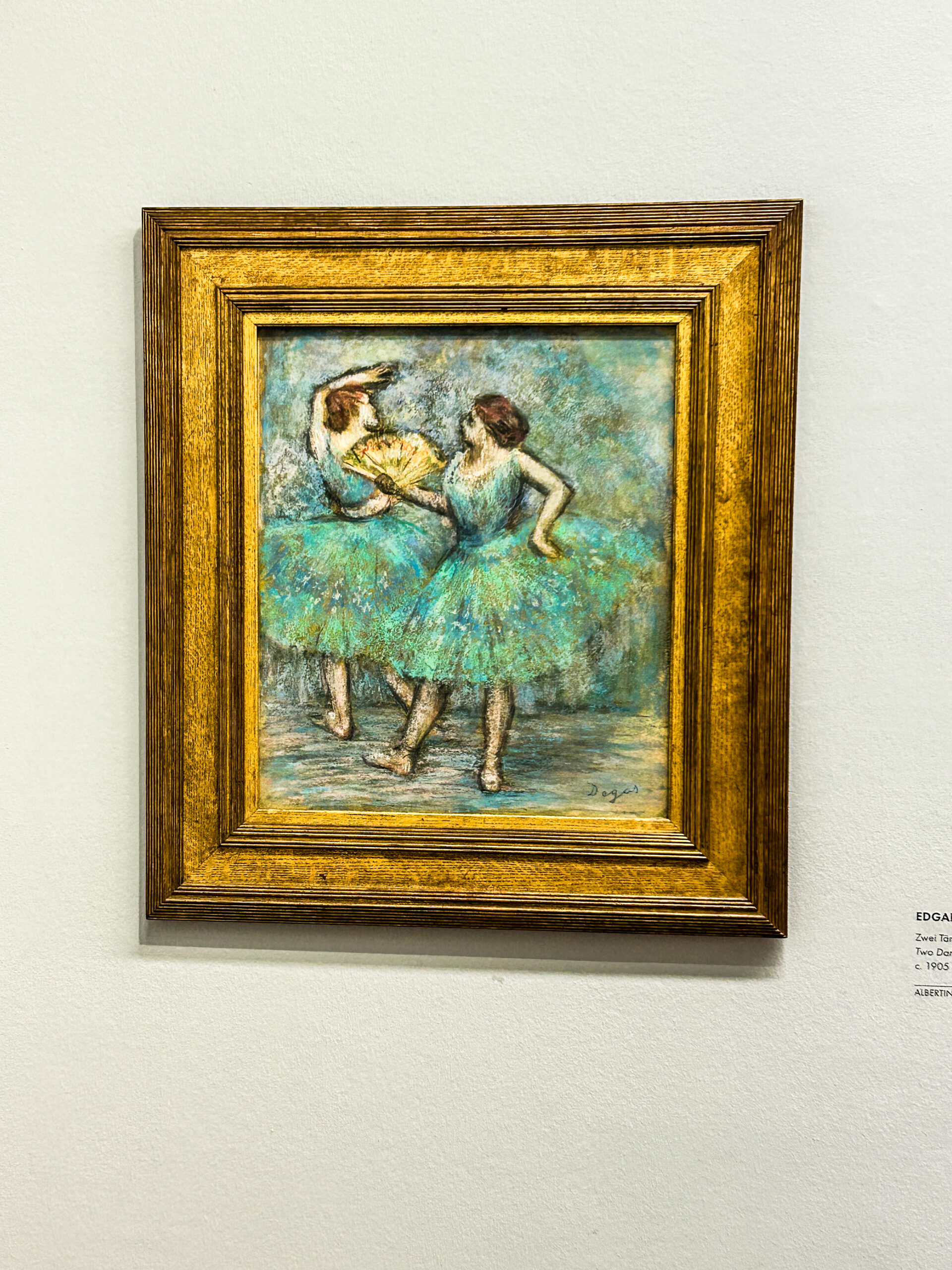 Naše cesta pokračovala do Albertiny, kde jsme objevili výstavu „Leonardo & Dürer“, která představuje mistrovské kresby těchto dvou renesančních velikánů. U jejich detailních kreseb se dá strávit fakt několik hodin, ani jsem nečekala, jak mě to bude bavit. Zajímavý je taky koncept výstavy „Wong & Van Gogh“, která staví do dialogu dílo Van Gogha s tvorbou současného hongkongského umělce. A samozřejmě, stálá expozice od Moneta k Picassovi“ je vždycky potěšením pro oko s výběrem těch nejlepších děl od impresionismu až po 20. století.