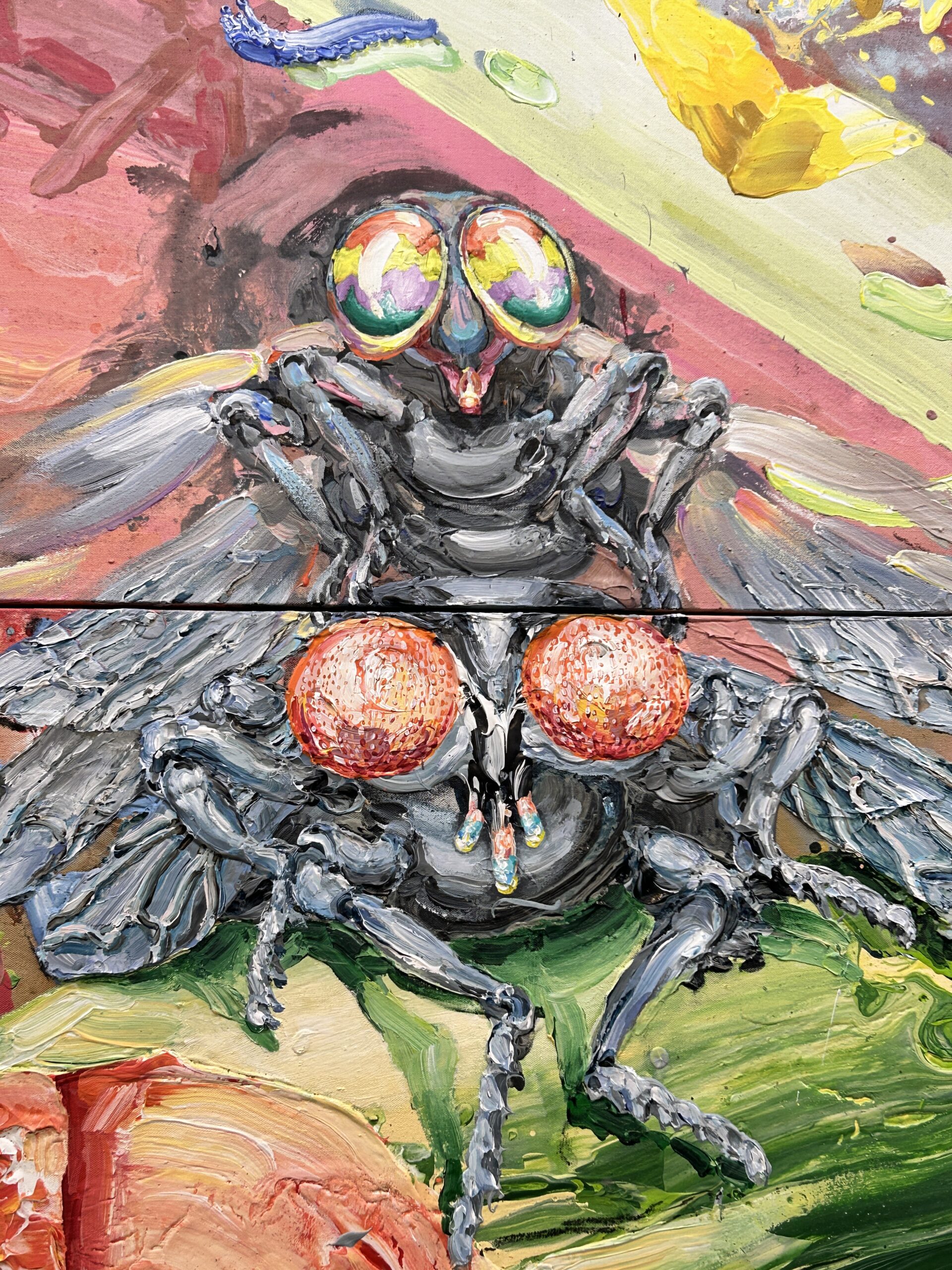Moje další kroky vedly do Musea Kampa na výstavu Michaela Rittsteina Nohy na stole. A tahle změna tempa mi udělala dobře. Rittsteinovy obrazy jsou živé, barevné a plné specifického humoru. Jeho styl je takový zvláštní mix groteskního a přemýšlivého – postavy jsou přehnané a někdy až absurdní, ale když se do obrazů ponoříte, začnete nacházet odkazy na běžný život a vztahy, které znáte. Je to trochu jako podívat se do zrcadla, které vás nejen pobaví, ale donutí se i zamyslet. Skvělý kontrast k historickému baroku a určitě něco, co stojí za vidění.
